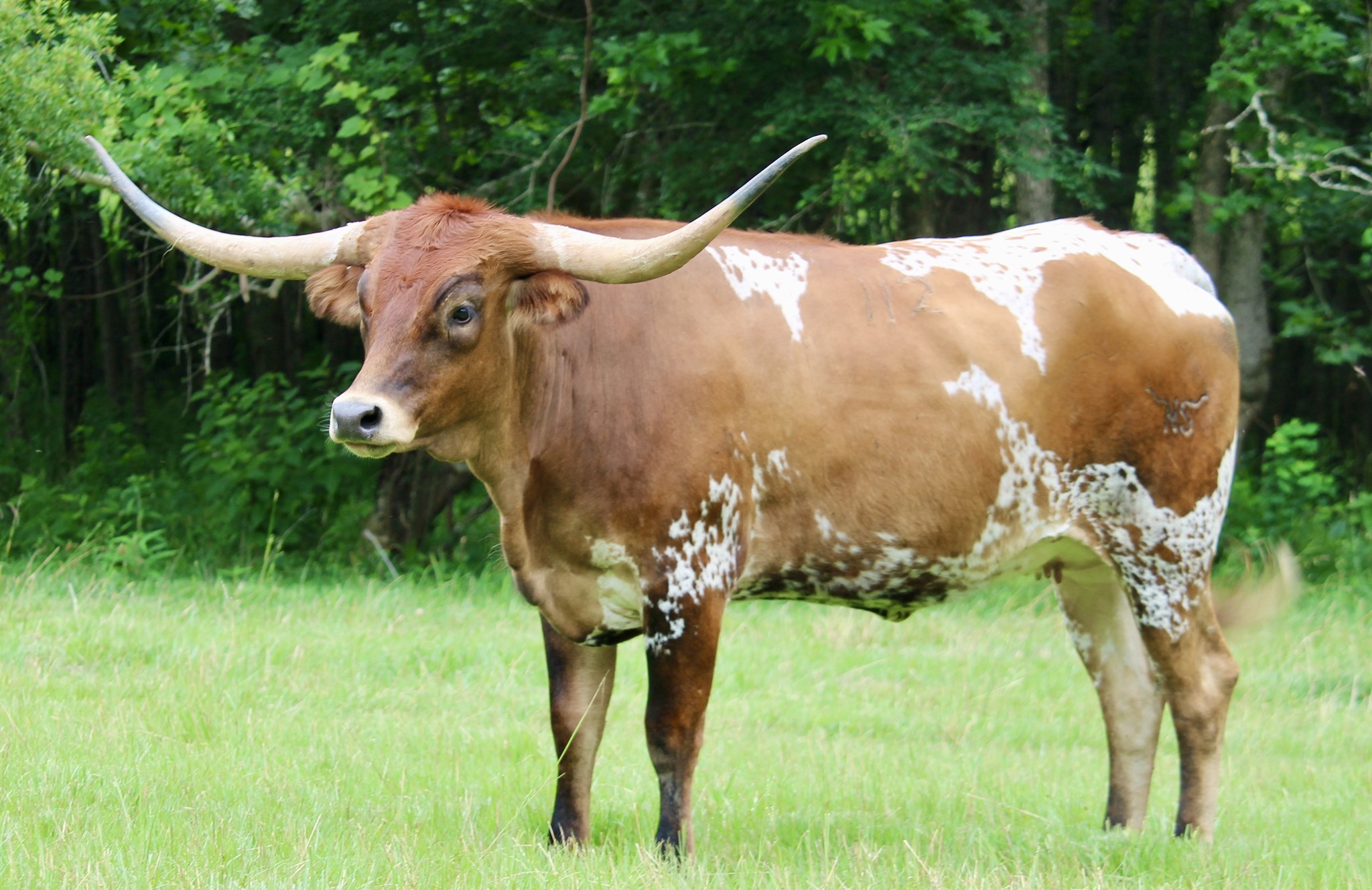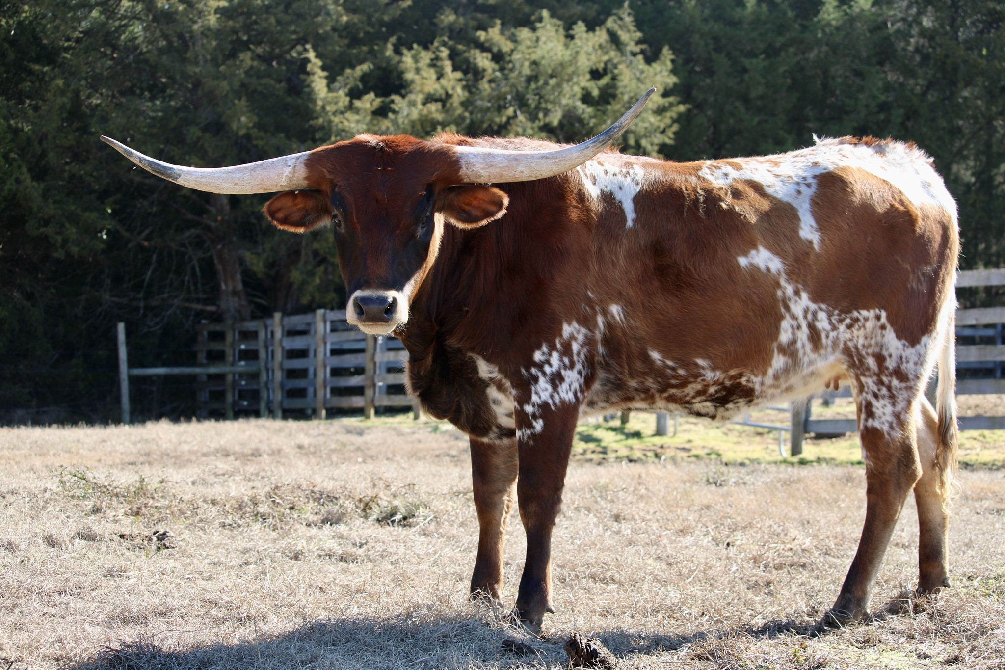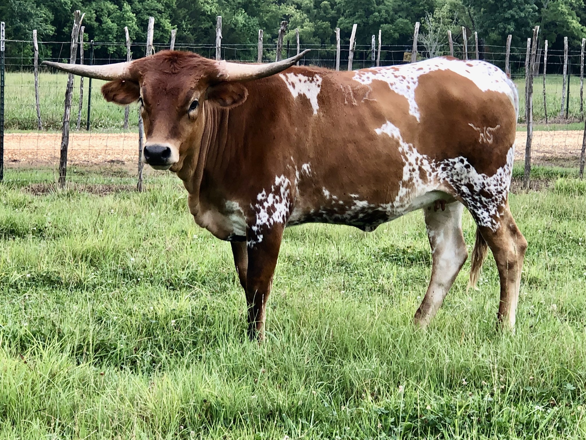 NS Cutie Pie is an integral part of our Horseshoe J Feat linage. Feat is an amazing Peacemaker daughter from Jimmy Jones program with over 86 inches of beautiful twisty horn. Her dam, Horseshoe J NS, sold at the 2023 Legacy sale for $115K. She 84.5” at 4 years old with gorgeous twist. We look forward to Cutie Pie carrying on this family tradition of lateral twist, color and conformation!